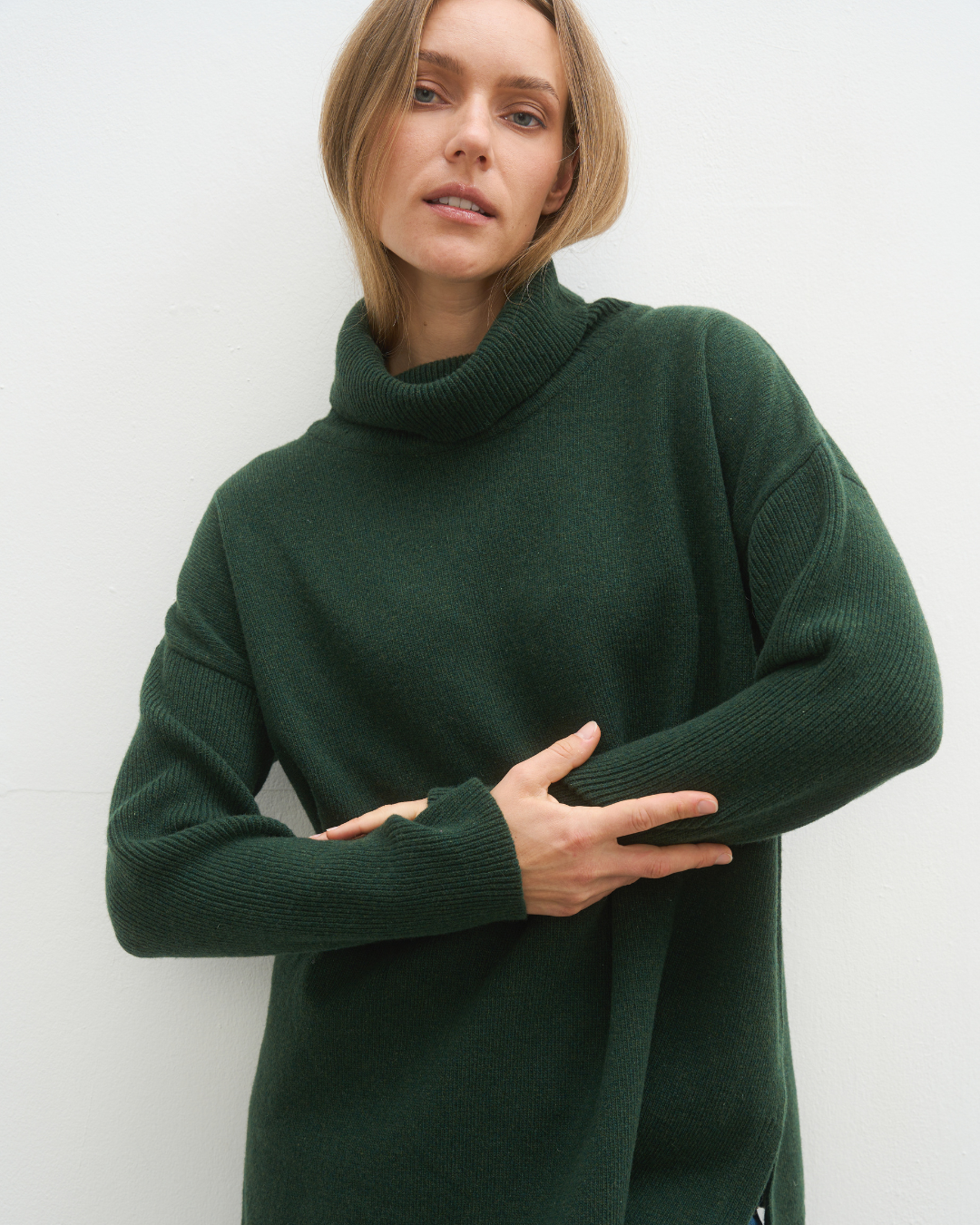 Discover the perfect harmony of luxury and comfort! This sweater, crafted from high-quality cashmere and Merino wool, stands out for its natural warmth, durability, and lightweight feel. It is ideal for everyday wear, work, or special occasions. The fine-knit pattern highlights a minimalist and contemporary style, while the high collar adds extra cosiness and elegance.