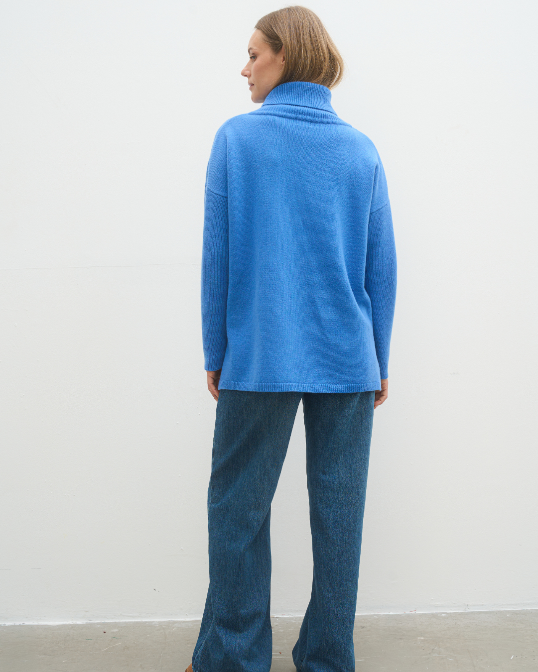 Discover the perfect harmony of luxury and comfort! This sweater, crafted from high-quality cashmere and Merino wool, stands out for its natural warmth, durability, and lightweight feel. It is ideal for everyday wear, work, or special occasions. The fine-knit pattern highlights a minimalist and contemporary style, while the high collar adds extra cosiness and elegance.