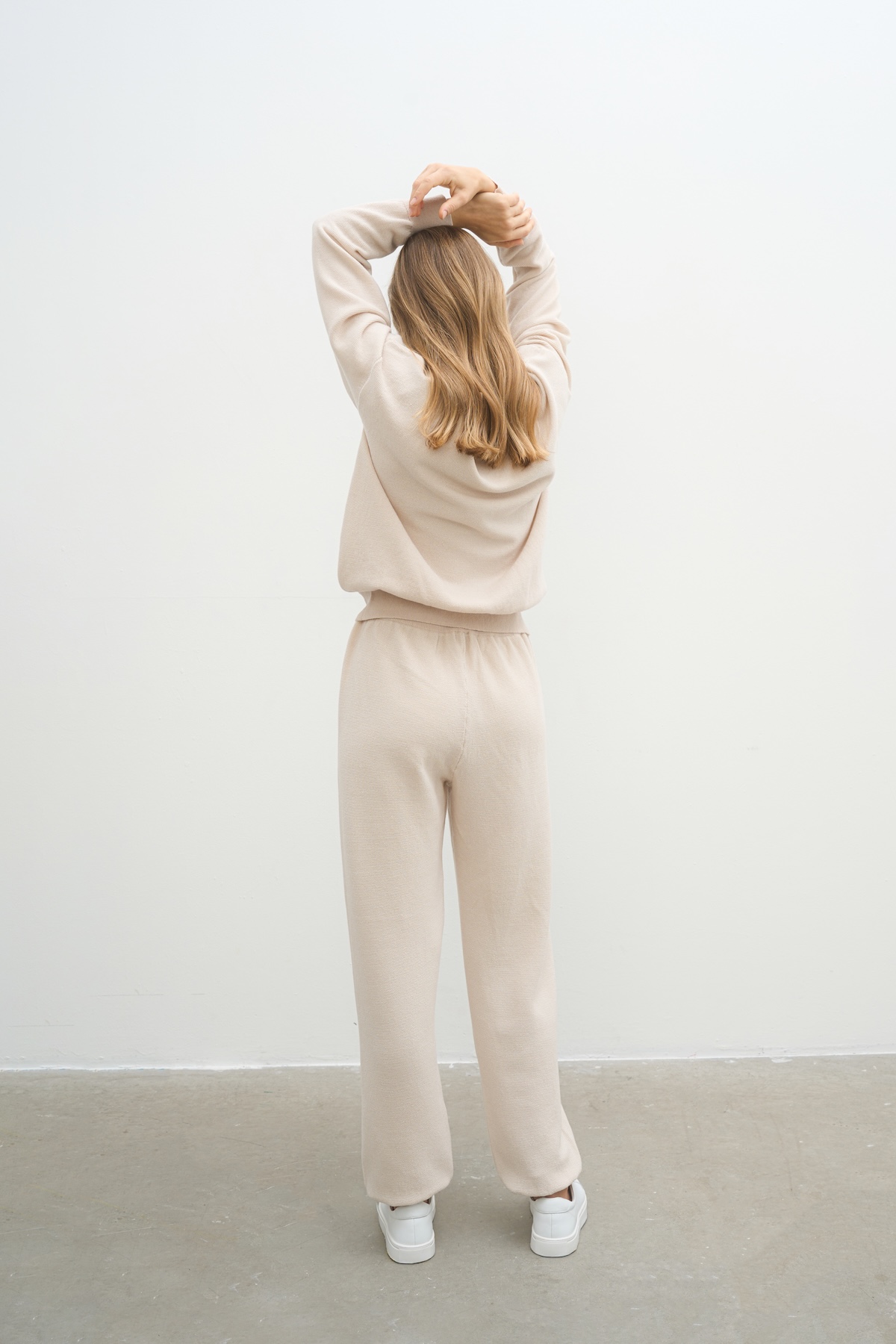 Patogios, aukštos kokybės kelnės iš 100 % Merino vilnos, megztos dvigubu, dviejų spalvų siūlu. Toks mezgimas suteikia gaminiui išskirtinį tvirtumą, vizualinį gylį ir švelnų, subtiliai melanžuotą paviršių.