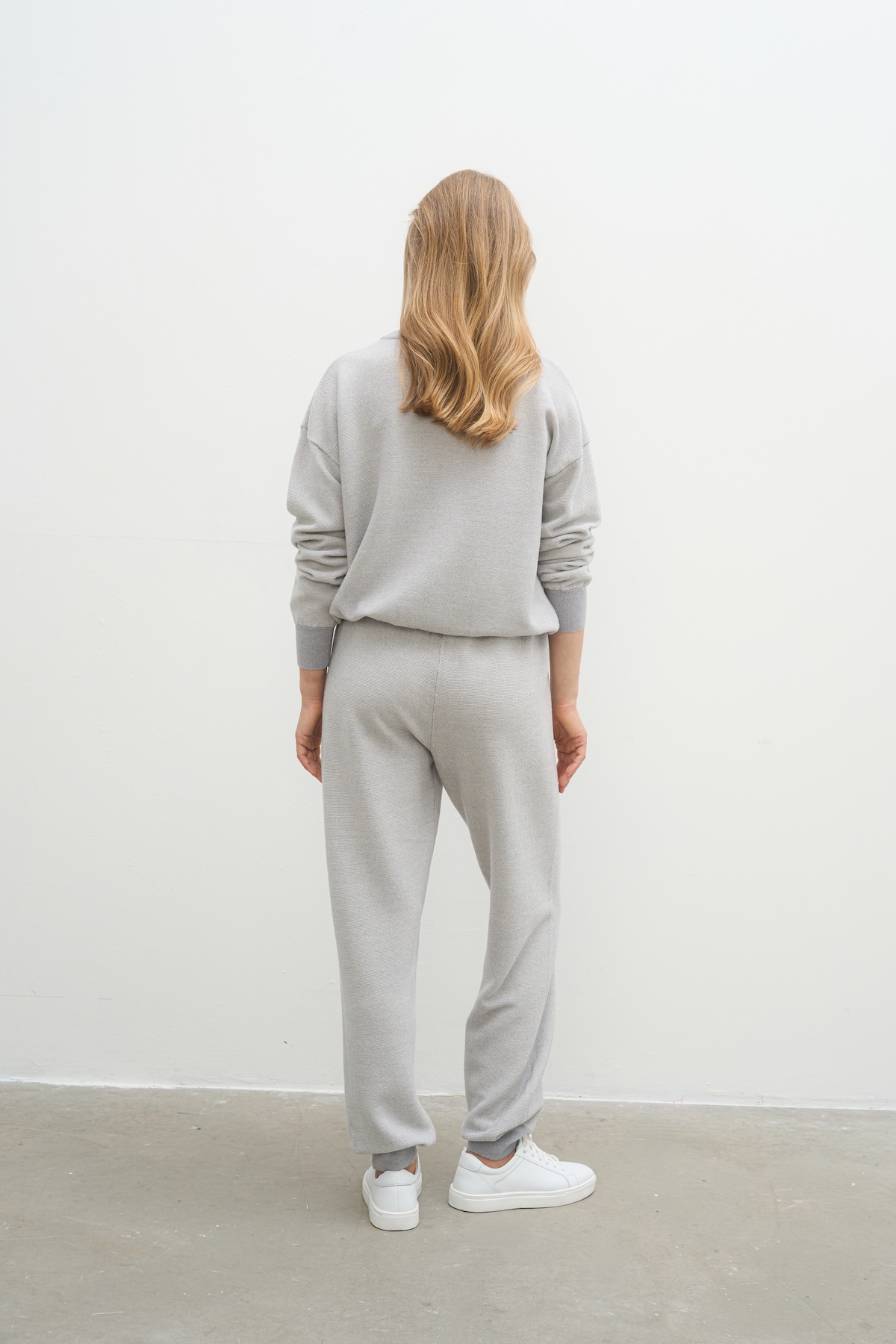 Universalus, aukštos kokybės džemperis iš 100 % Merino vilnos, megztas dvigubu, dviejų spalvų siūlu. Toks mezgimas suteikia gaminiui išskirtinį tvirtumą, vizualinį gylį ir švelnų, subtiliai melanžuotą paviršių.