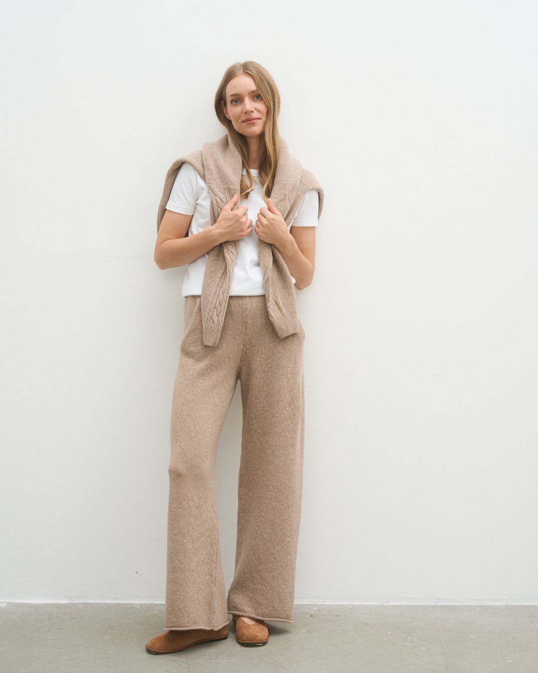 These wide-leg trousers are made of 100% Merino wool – a perfect blend of lightness and coziness. The soft wool allows your skin to breathe, keeps you warm even on cooler days, and ensures freedom of movement.
